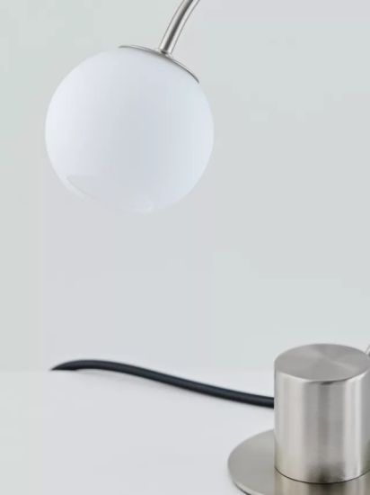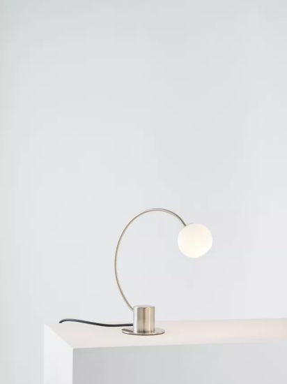 Made with a compact metal base and opal glass shade, this minimalist table lamp is a space-saving option for work desks or bedside tables. It provides a warm and effective glow of light.
