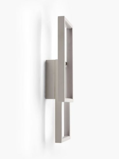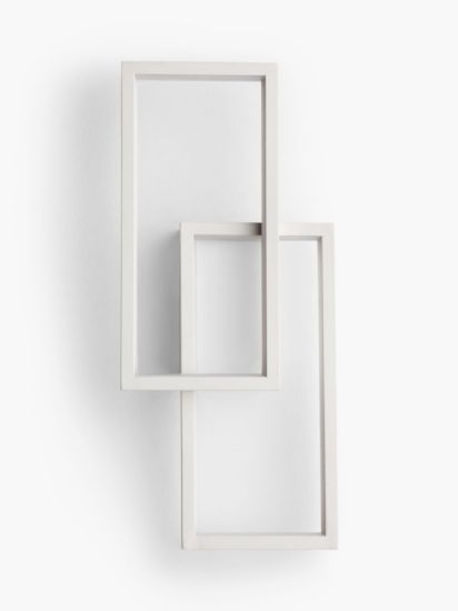 • Designed with overlapping rectangular shapes, this modern light offers an eye-catching and abstract lighting solution. The integrated LED strips illuminate the frame, creating a glowing wash of light up and down the wall. Finished with textured paint, this sculpted piece is ideal for contemporary spaces.
